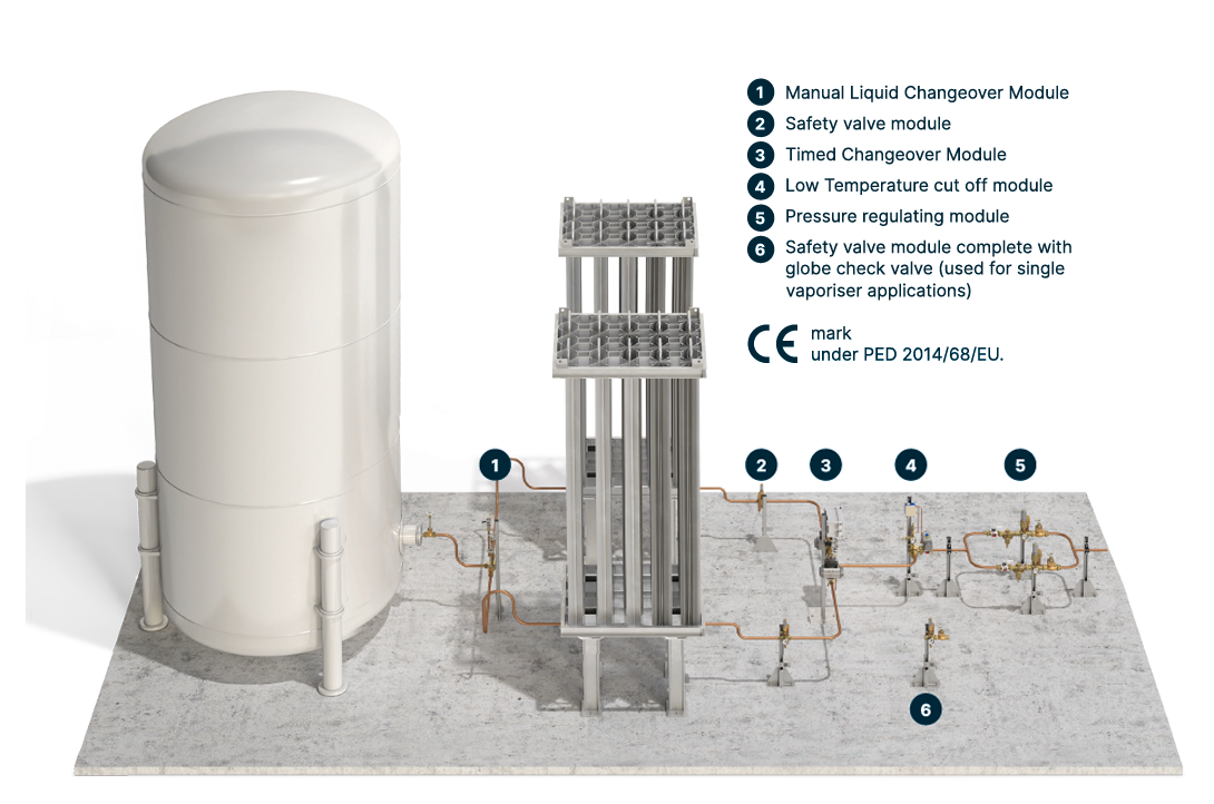 Six basic modules are available in a typical configuration for industrial gas systems